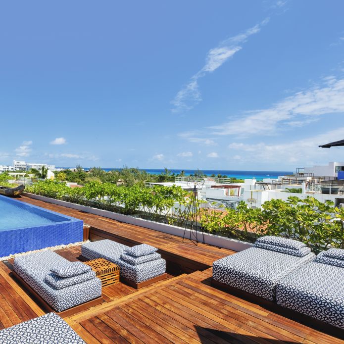 Perched on the rooftop, four stories above Fifth Avenue, our infinity-edge pool invites you to cool off, settle into a lounger, and gaze at the sea.