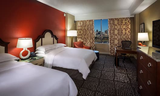 Enjoy our newly renovated rooms in the Tower which feature modern styling and Gilchrest & Soames luxury bath products. There are several room types to suit your needs, from standard King and Double Queen rooms to Family Suites and Premier One Bedroom Suites.