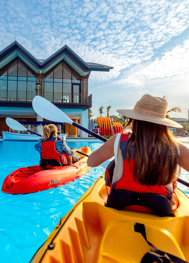 Evermore Bay will astound you with its extraordinary number of activities, including paddleboarding, kayaking, an epic rope swing, and an ultra-wide slide that’s big enough for the whole family.