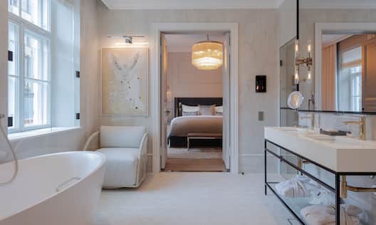 Habitaciones y suitesDesde artículos esenciales refinados hasta comodidades superiores, cada habitación y suite ofrece una escapada idílica con baños elegantes, chandeliers elegantes y tecnología inteligente.