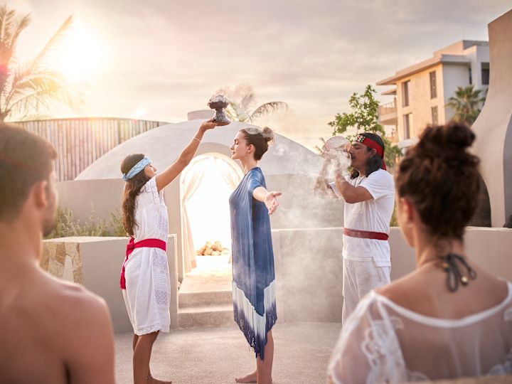 Commencez votre voyage de découverte de vous-même en purifiant et en réparant votre esprit, votre corps et votre âme avec un rituel Témazcal que les peuples indigènes Huichol de notre région du Mexique ont choisi depuis des générations. Le Huichol Shaman effectue un nettoyage avant que chaque hôte n'entre dans le Temazcal, une structure en pierre en forme de dôme. Une vapeur à base de plantes ainsi que des chants et de la méditation font partie du rituel de purification à quatre portes. Après cette cérémonie majestueuse, dégustez des rafraîchissements nourrissants et détendez-vous dans la piscine privée du spa.