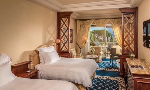 Chambre Deluxe avec deux lits jumeaux et vue sur le parc privé