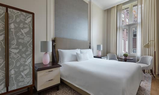 Kamar & SuiteMenginaplah di salah satu dari 93 kamar, loteng, atau suite mewah kami yang luas. Akomodasi kami memiliki arsitektur yang luhur dan dilengkapi dengan seprai halus dan furnitur berjamur. Setiap kamar menghadap ke Kanal Herengracht atau taman halaman pribadi kami.