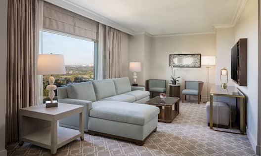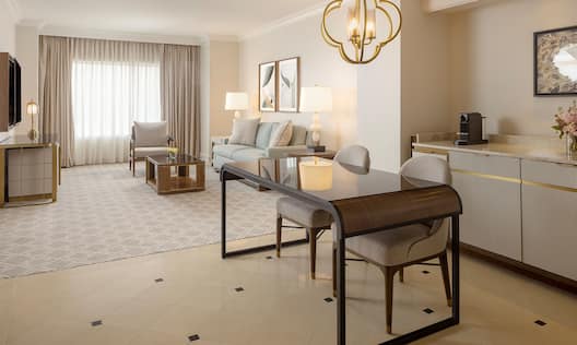 Suite khusus kami sangat cocok untuk tamu yang menginginkan kenyamanan dan ruang ekstra. Anda dapat memilih dari Suite Chairman, Suite Governor, atau Suite Presidential. Suite ini memiliki banyak kamar tidur, area besar untuk ruang tamu dan bersantap, kamar mandi mewah dengan tambahan, dan balkon pribadi dengan pemandangan yang tenang.