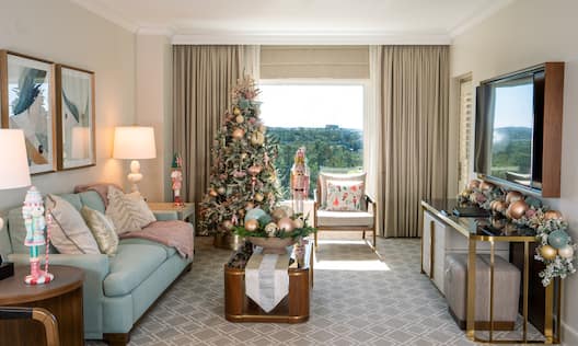Rayakan liburan penuh pesona dengan menginap di suite bertema indah kami, di mana fasilitas musiman yang mewah dan aksen yang meriah memberikan nuansa liburan yang tak terlupakan.