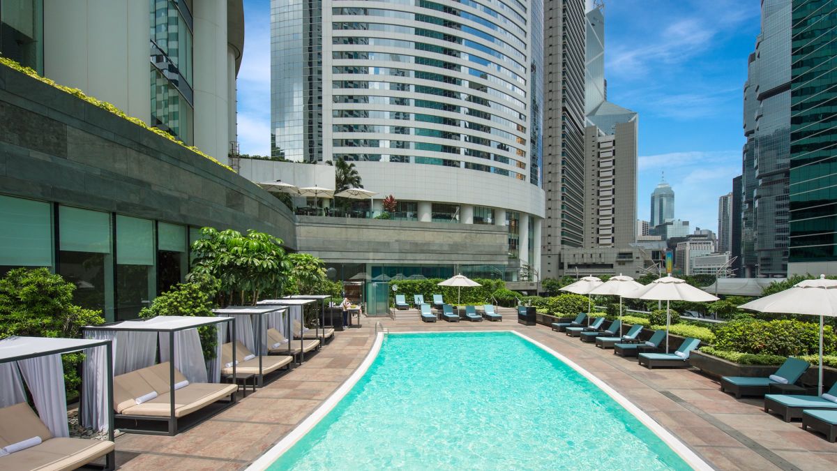 Bucurați-vă de piscina noastră exterioară cu vedere spre cerul Hong Kongului.